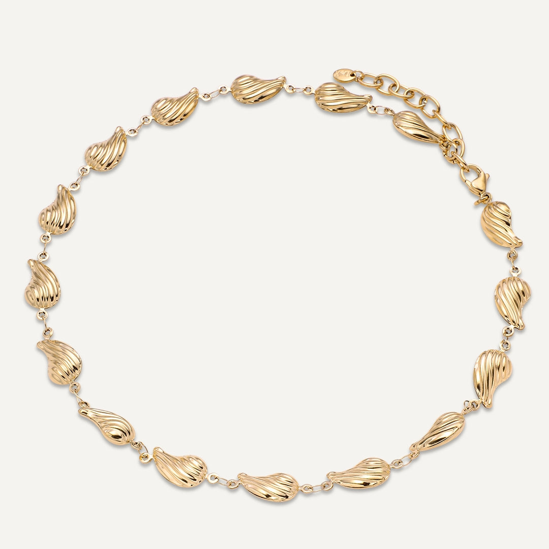 Sculpted like molten gold and designed to flow with your vibe, Liquid Luxe Chain Necklace brings serious energy to your layering game. Featuring ripple-textured links with a high-shine finish, this 18K gold-plated statement piece is waterproof, tarnish-resistant, and ready for whatever mood you’re in.