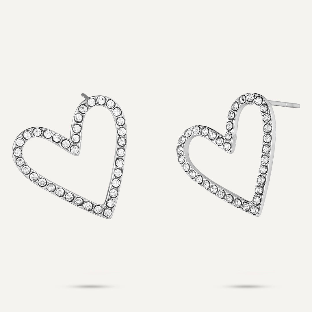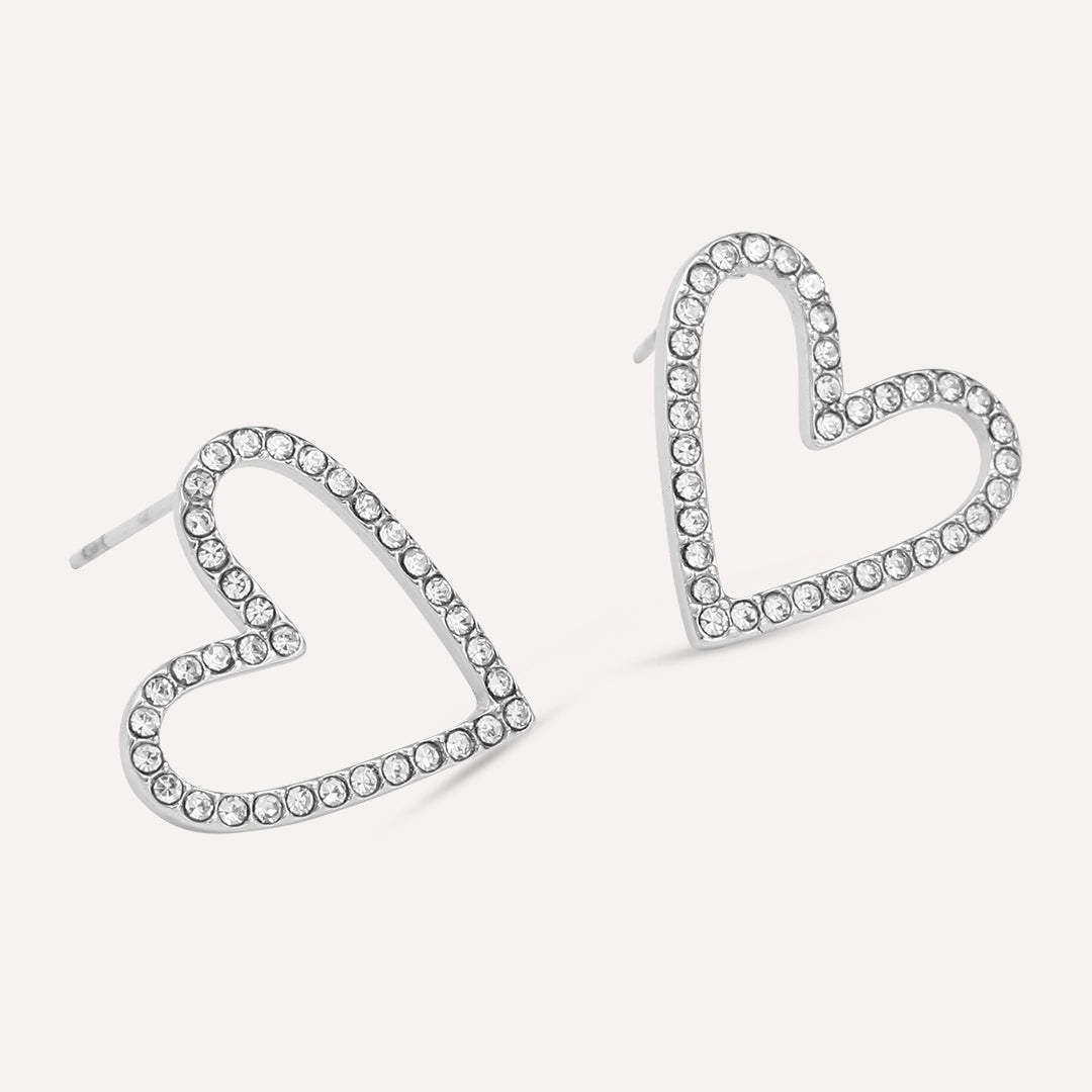 Vibes | Love Lines Heart Post Earrings | White Gold-Plated