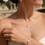 We recommend that you store your plated jewellery in a soft pouch or box when not in use, to increase the longevity of your piece. Do not store your pieces in direct sunlight or in damp and humid environments. Ensure they remain separated, so their chains do not tangle, or scratch against each other.