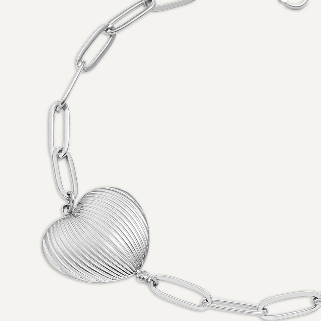 Vibes | Ribbed Heart Chain Bracelet | White Gold-Plated