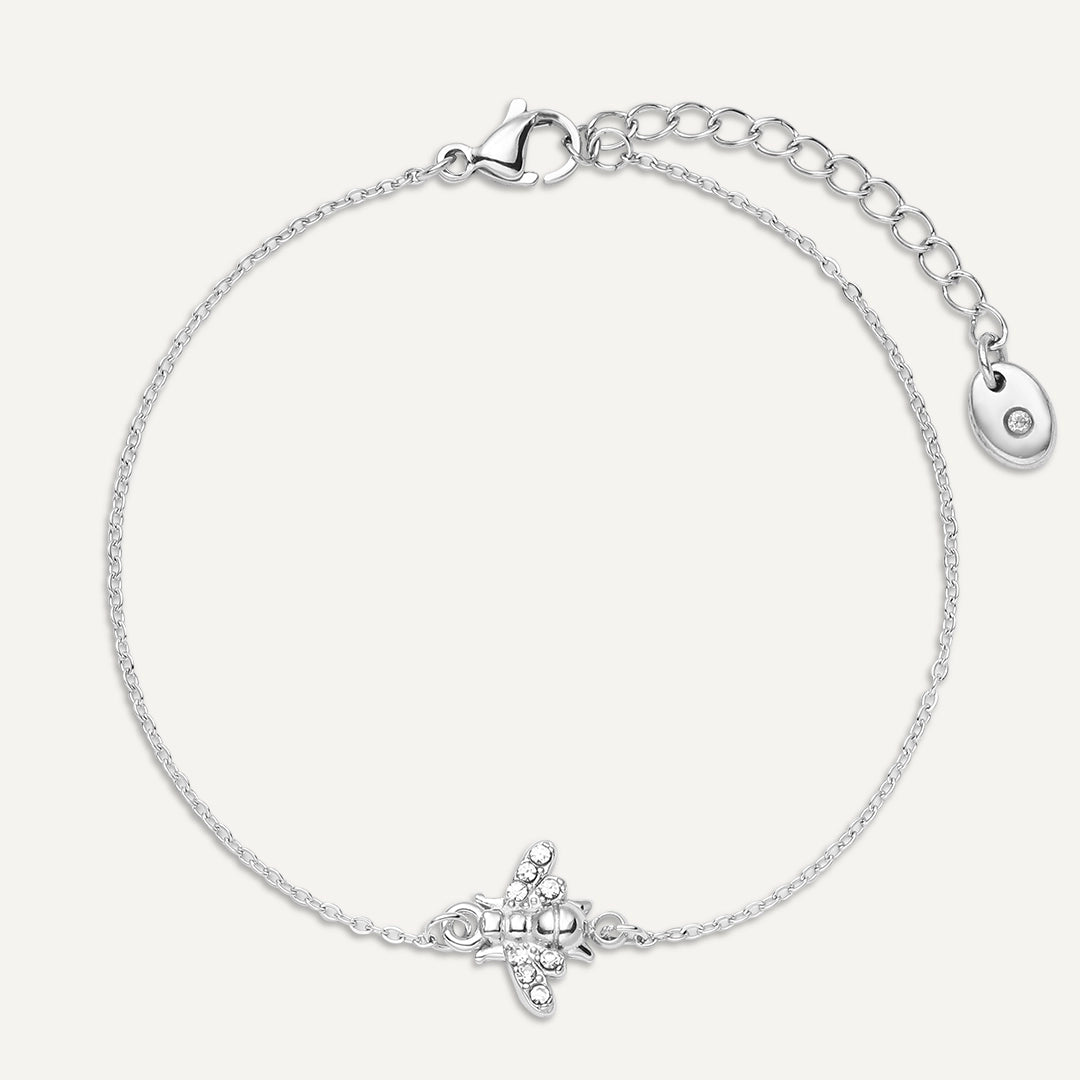 Vibes | Sparkling Bee Clasp Bracelet | White Gold-Plated