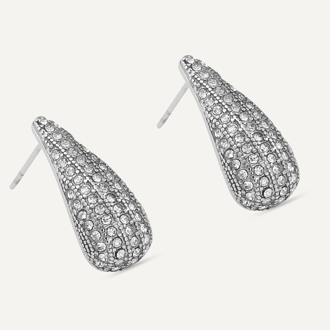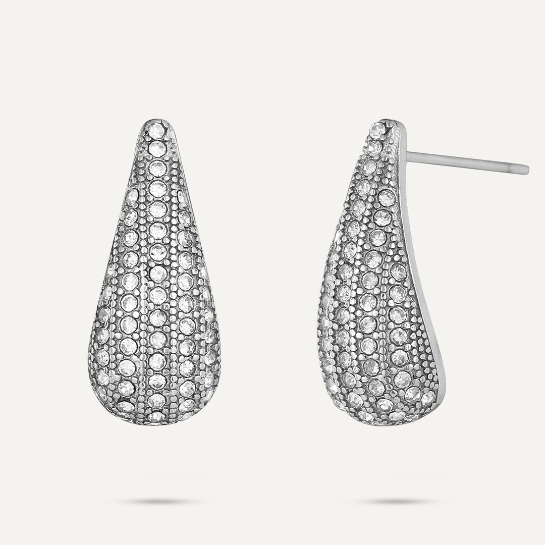 Vibes | Sparkling Teardrop Post Earrings | White Gold-Plated