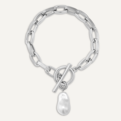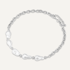Faux Pearl T-Bar Necklace In Silver-Tone